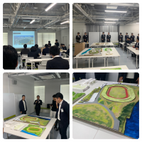 九州IRシンポジウムin福岡開始前の午前中に、榎本委員長はじめとする都市環境デザイン委員会の皆様による九州大学の学生たちの「平和台陸上競技場周辺の再開発デザイン発表会」が行われましたので挨拶に伺いまし