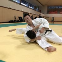 本日は朝9時に西嶋委員長はじめとする研修委員会による前期仮入会者第二回オリエンテーションに挨拶に伺いました。 福岡武道館での柔道研修ということで、黒帯を巻いた西嶋委員長が自ら仮入会者たちに柔道を通し