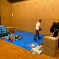 本日7月9日 中央区荒戸のふくふくプラザにて被災地に向けて、スコップ等の資材を被災地へ送