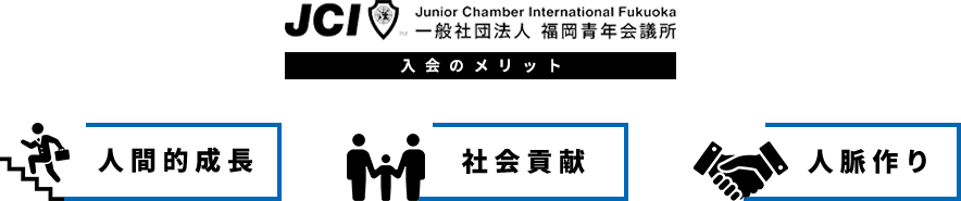 JC(=青年会議所)は、“明るい豊かな社会”の実現を目的とする、一般社団法人として認可された団体です。 JCI福岡は、福岡市とその近郊のまちのため、そこに住む人のためになることをメンバー同士で考え、様々な運動を行います。