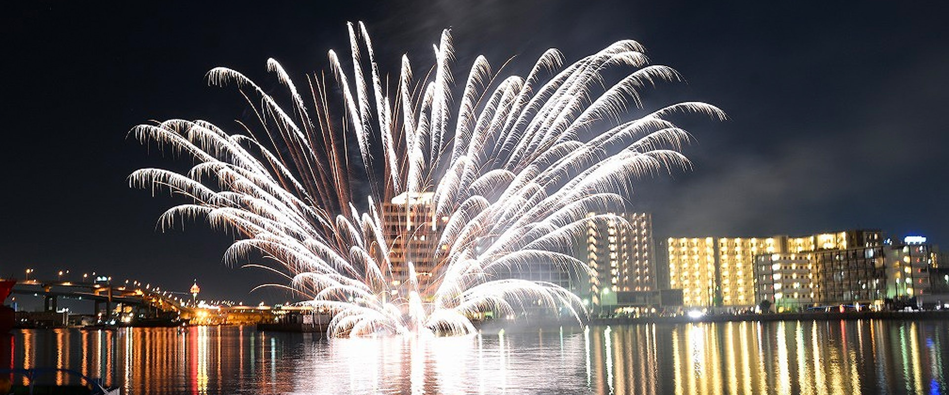 ・港地区で初の水中花火を打ち上げ